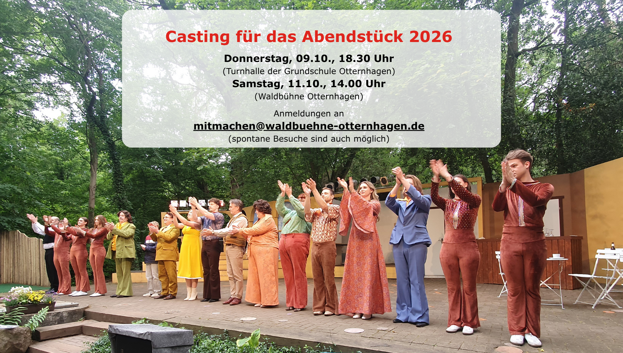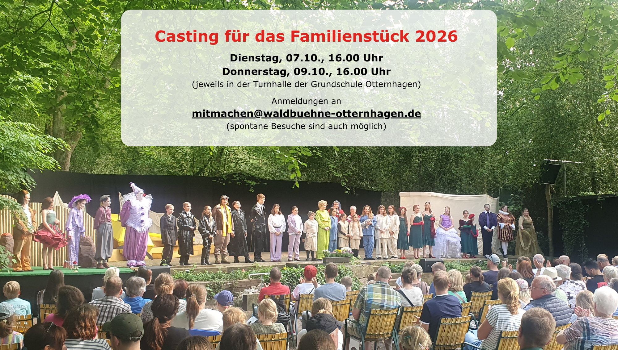 Anmeldungen fürs Casting an mitmachen@waldbuehne-otternhagen.de oder über das unten stehende Anmeldeformular (spontane Besuche sind auch möglich).